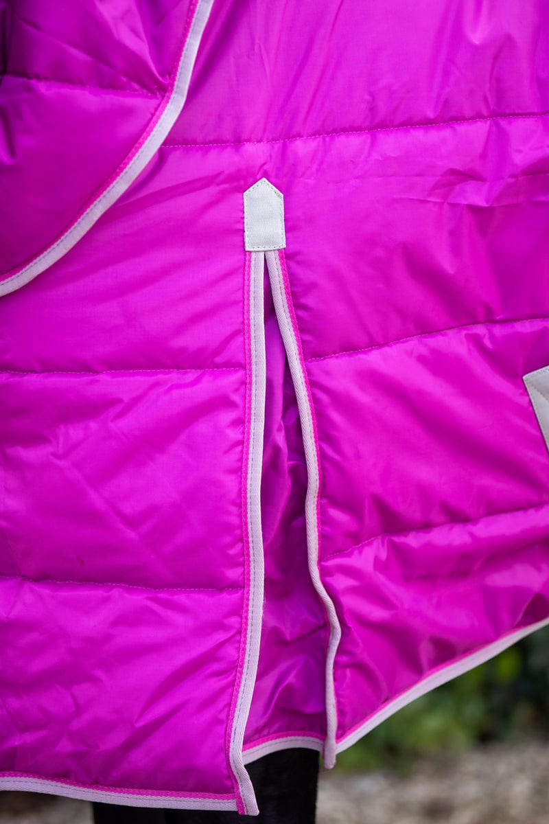 A fantastic 450g Heavy Weight Detachable Neck Stable Rug that can be used with or without the detachable neck cover. It has a 400g filling. It has large shoulder gussets, cross surcingles and a tail flap. Soft nylon lining with anti slip darts on the quarters. It is designed to sit higher on the neck/shoulders to prevent the rug from slipping back and rubbing, we have had fantastic feedback about this design. The neck attaches with 2 pieces of double sided velcro. This rug also comes with a handy storage bag.