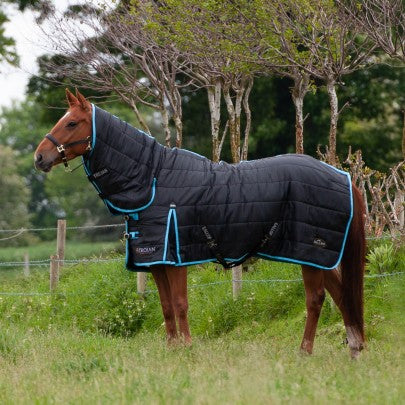 Our Bestselling 300g Combo Stable Rug is now available in a beautiful Black with Sky Blue binding. Features include a 300gsm insulated fill and cotton lining. It is channel quilted to distribute heat evenly across the rug, making this a simple comfortable rug for the winter months.