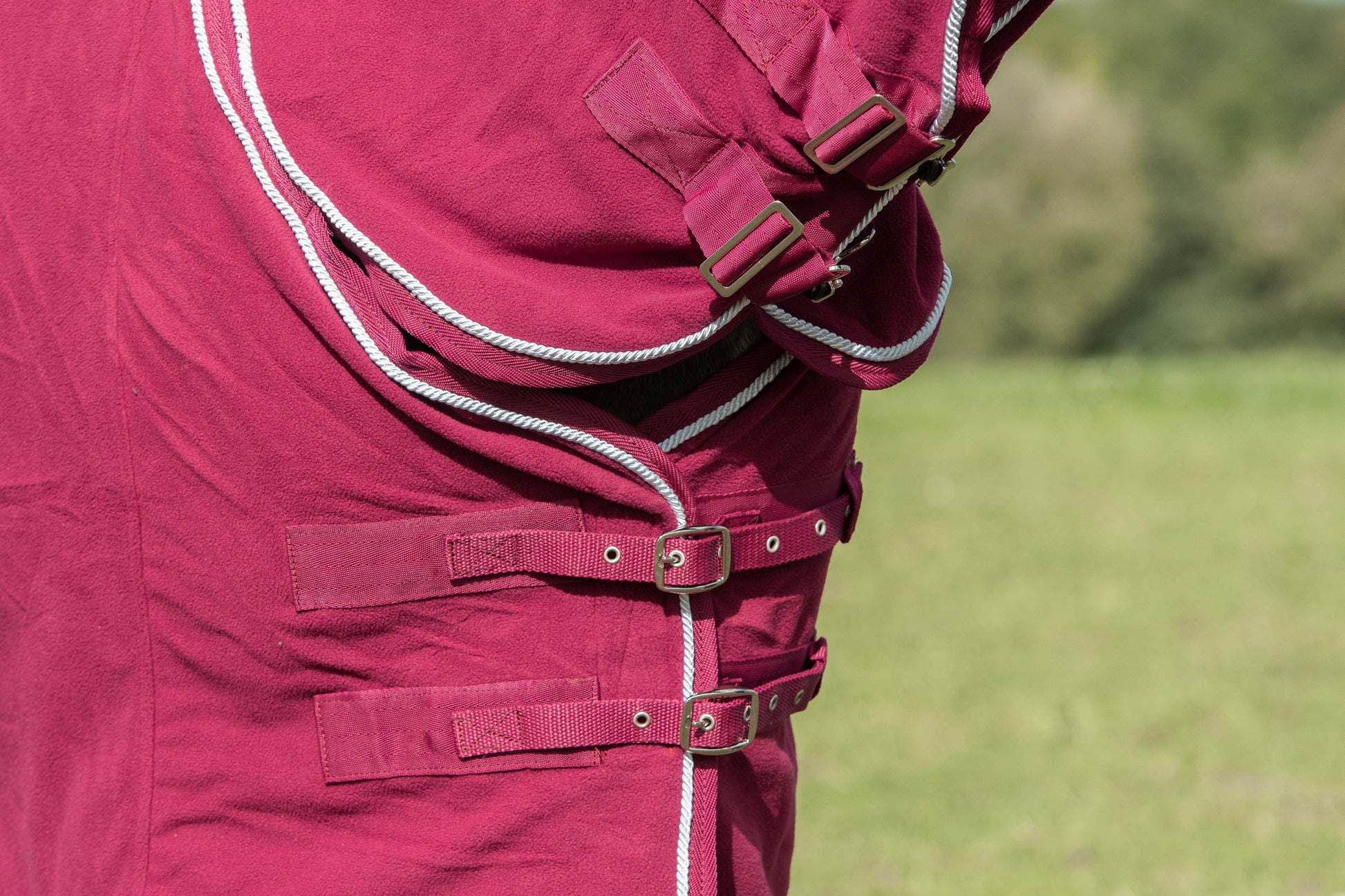 A must have rug for any horse. Our new wicking fleece rug is made from a luxurious thick fleece with wicking properties; it has double chest closures and low cross surcingles and a fixed neck. It is perfect for use after exercise to stop the horse cooling down too quickly. It is a stunning design perfect for use when traveling to and from competitions, after exercise and after washing off. It is also handy for use in the stable. A luxury rug at a fantastic price. Please note this rug is generous fitting, if in between sizes we suggest going for the smaller size.