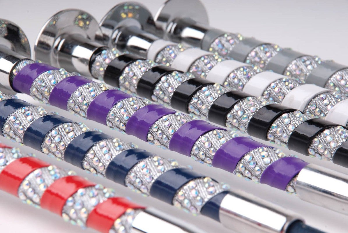 Add a bit of sparkle with this attractive schooling whip. It has silver spiral crystals on the handle with a metal end cap.
