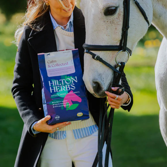 Calm & Collected is a natural herbal supplement carefully blended to help maintain a calm, steady, and balanced nervous system in horses, ponies, and donkeys. Combining the gentle, soothing properties of Chamomile, Valerian, and other calming herbs, it provides effective support for horses prone to anxiety, tension, or stress-related behaviour.
