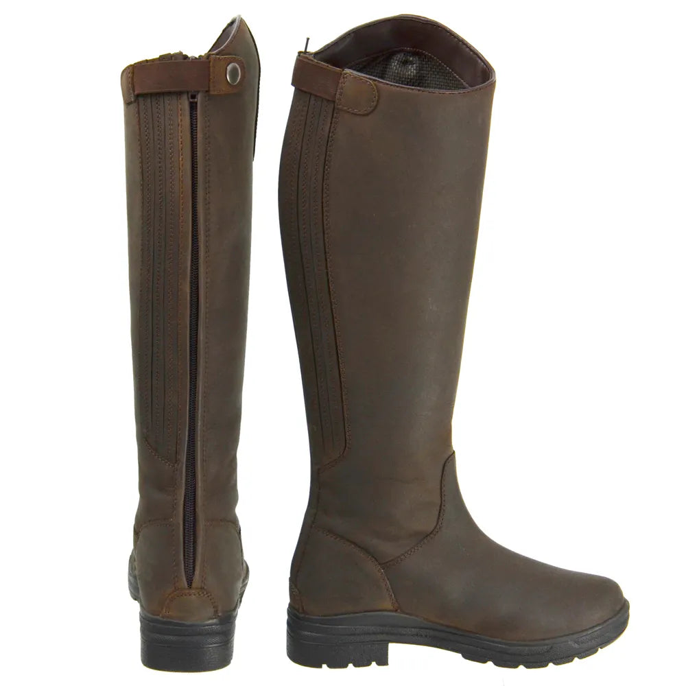 A stylish, practical and robust boot which is lightweight and comfortable to wear. Designed in water repellent oiled leather, these boots will keep you dry in all weathers. Lined in technical Cambrill fabric for added comfort, to allow the feet to breath when you’re working hard. A full length YKK zip at the rear of the boot, ensures the boots are quick and easy to remove with integrated stretch panels on the back of the calf for comfort and freedom of movement whilst riding. The PU sole is stitched for double strength and features anti-skid grip for those icy wintry mornings on the yard. This attractive boot is perfect for riding, course-walking or just enjoying the countryside.