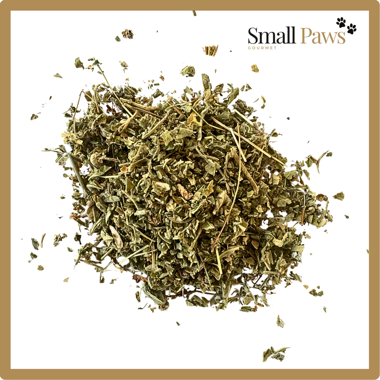 Marshmallow leaf is an excellent herbal choice for small animals, offering a variety of health benefits. Known for its soothing properties, marshmallow leaf can help alleviate digestive discomfort and promote gut health, making it particularly beneficial for pets with sensitive stomachs. The leaf is rich in mucilage, which provides a natural soothing effect on the digestive tract and can aid in hydration. Additionally, marshmallow leaf contains antioxidants that support the immune system, helping your furry friend stay healthy and vibrant. Its mild flavour and texture can also encourage foraging behaviours, adding variety to their diet. Overall, incorporating marshmallow leaf into your small animal's meals can enhance their well-being while providing a tasty treat!